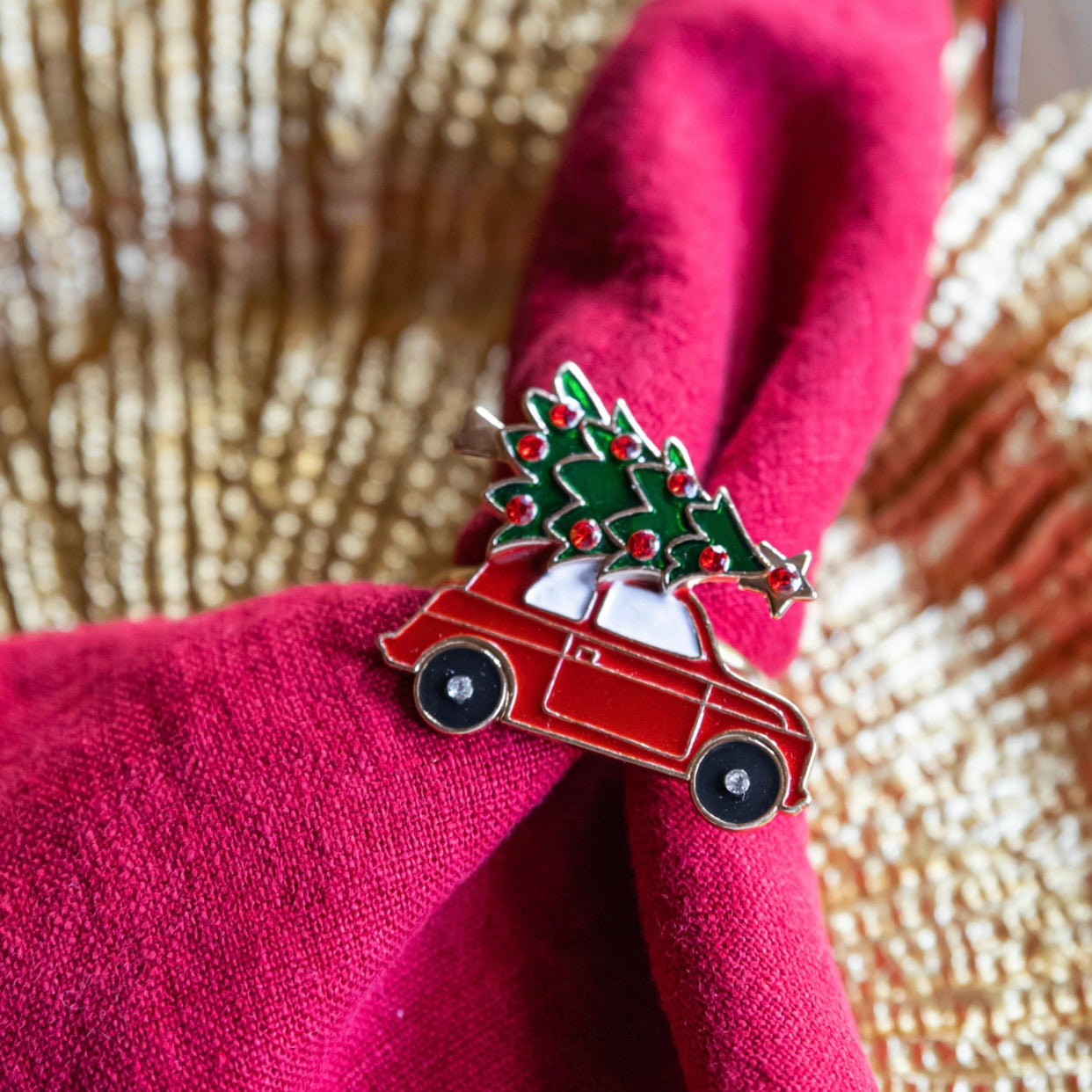 Traga um toque lúdico e festivo para a sua mesa com o Anel de Guardanapo Carro Natalino! Com um design encantador de carro carregando a árvore de Natal, ele adiciona um charme divertido e acolhedor à sua decoração, perfeito para alegrar as celebrações.