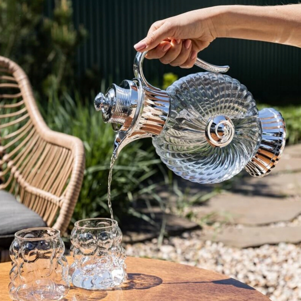 Charmoso e cheio de estilo, esse jarro de vidro com design em concha é perfeito pra servir com elegância ou decorar com personalidade. Com capacidade de 1,8 litros, ele combina curvas suaves com acabamento sofisticado, trazendo um toque de frescor e originalidade à sua mesa.